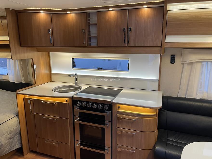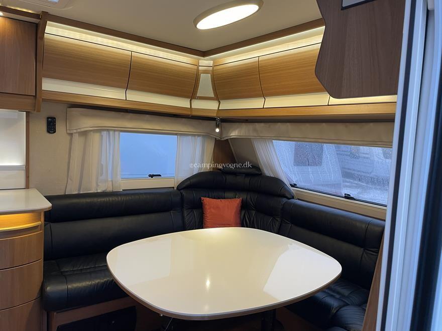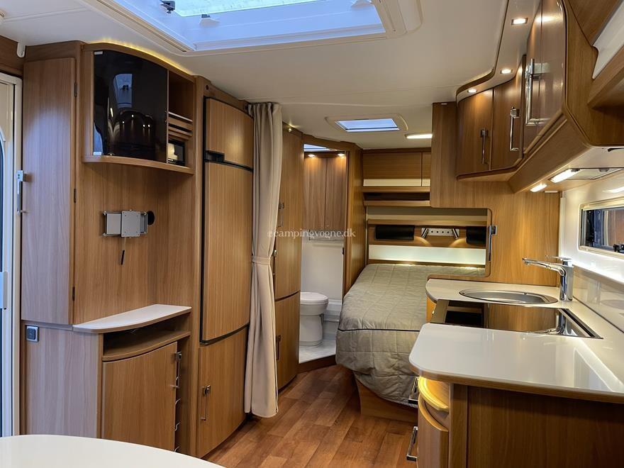 Super flot vintervogn indrettet med komfortabel sofagruppe i skind i forneden. Herefter stort køkken med komfur med gasbageovn overfor højkøleskab og klædeskab. I bagenden soveafdeling med dobbeltseng og toiletrum med brusemulighed.