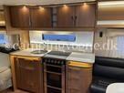 Vognen er udstyret med en Thule 9200 tagmarkise, Truma Se mover, Truma Secomotion gasflaskeomskifter, centralstøvsuger, skikasse, eltrin, udv.bruser m.m. |