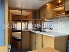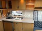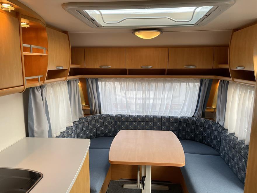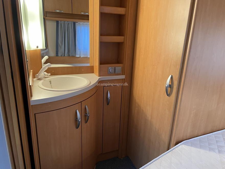 Vognen er indrettet med rundsiddegruppe i forenden. Køkken og klædeskab i midten og i bagenden fransk dobbeltseng samt toilet og bad.