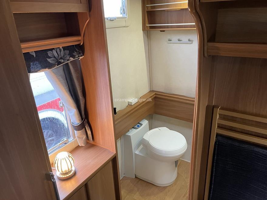Den er udstyret med XT mover, Thule tagmarkise, antenne, kantsyet gulvtæppe, solceller og Truma Duocontrol.