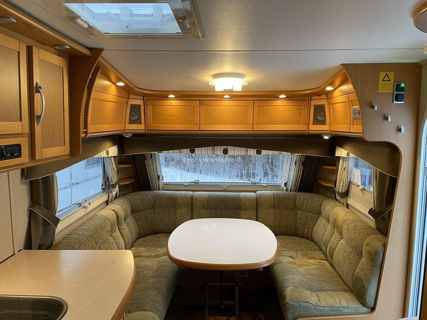 Vognen er indrettet med rundsiddegruppe i forenden i en god størrelse med plads til 5-6 personer.