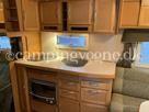 I midten findes køkkenafdelingen med gasbageovn, køleskab og skabsplads.