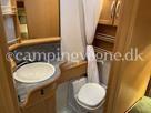 I bagenden af vognen findes fransk seng samt toilet med bruser og brusebund.