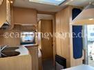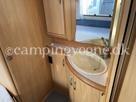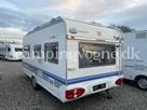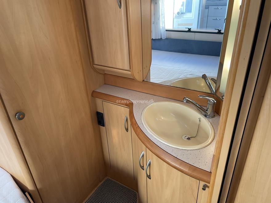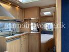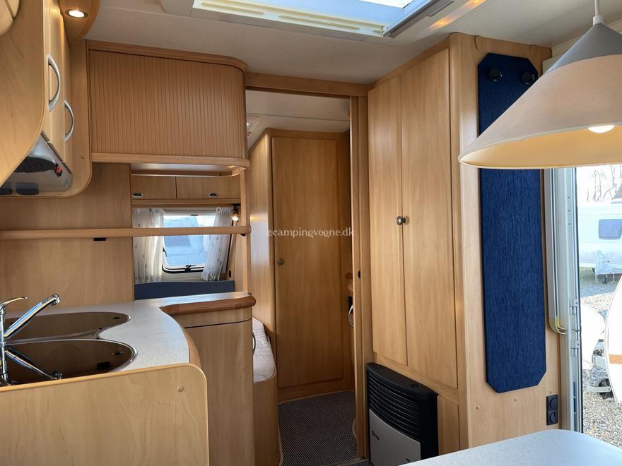 Øvrige oplysninger: Fin mindre rejsevogn med lav egenvægt. Vognen er indrettet med en rundsiddegruppe i bagenden, derefter køkken og overfor det er klædeskab og varmeovn, forrest i vognen finder du sove afdelingen med en fransk dobbeltseng samt vask og toiletrum med bruser. Der medfølger et Isabella Ambassador fortelt.