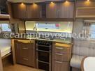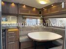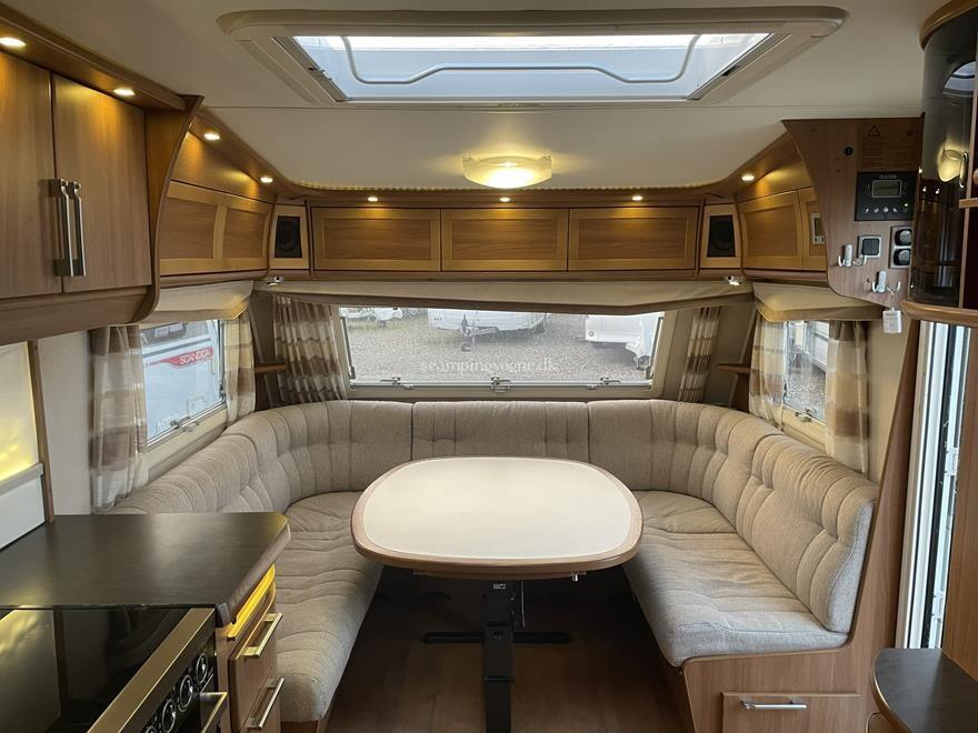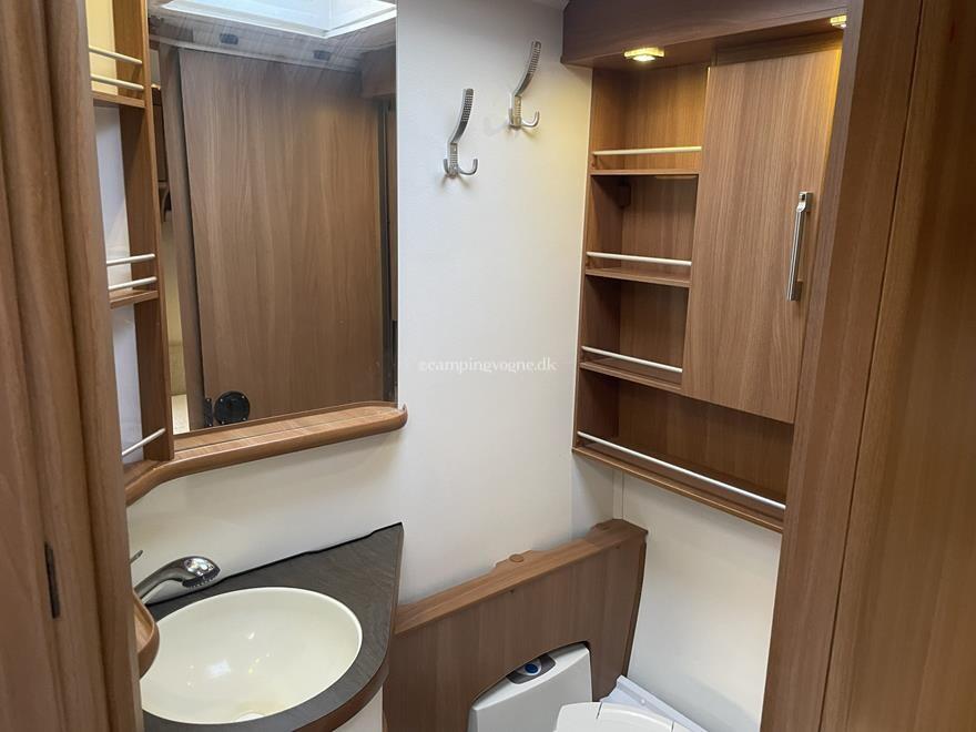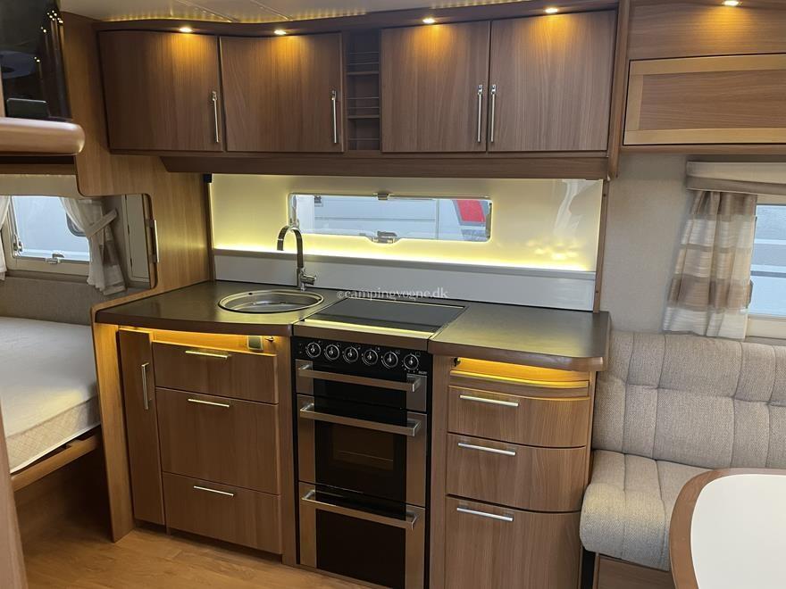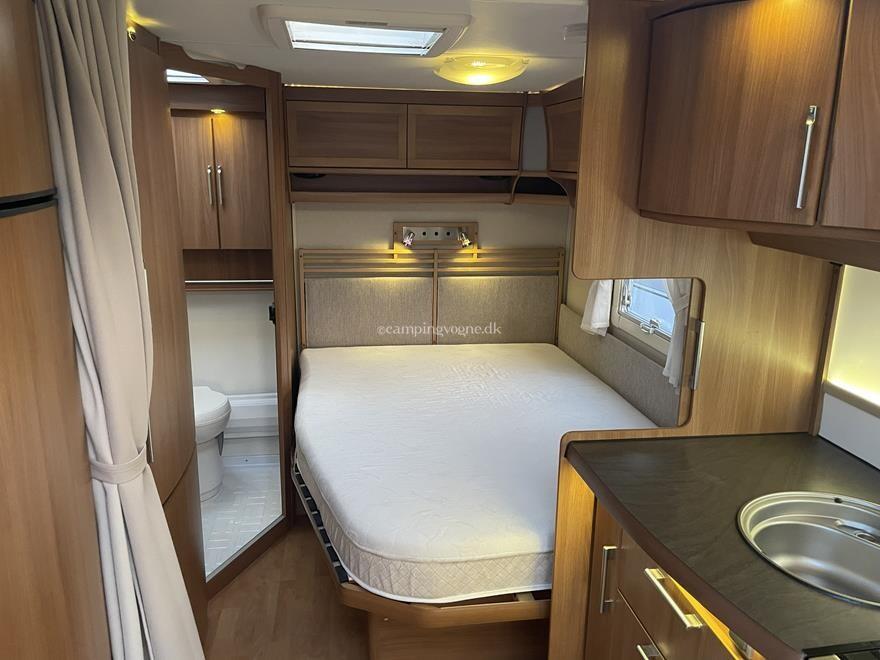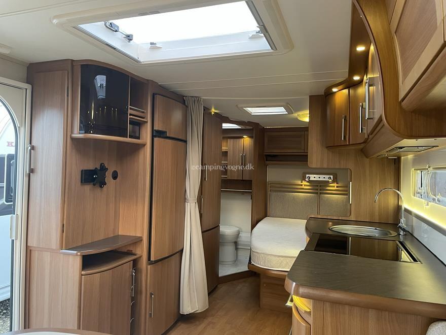 Vognen er indrettet med en god rundsiddegruppe i forenden, derefter godt køkken med gaskomfur og bageovn, samt klædeskabe og køleskab med separat fryser, bagerst i vognen er en fransk dobbeltseng og toiletrum med brusehane.