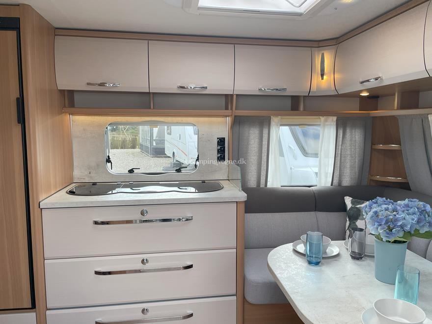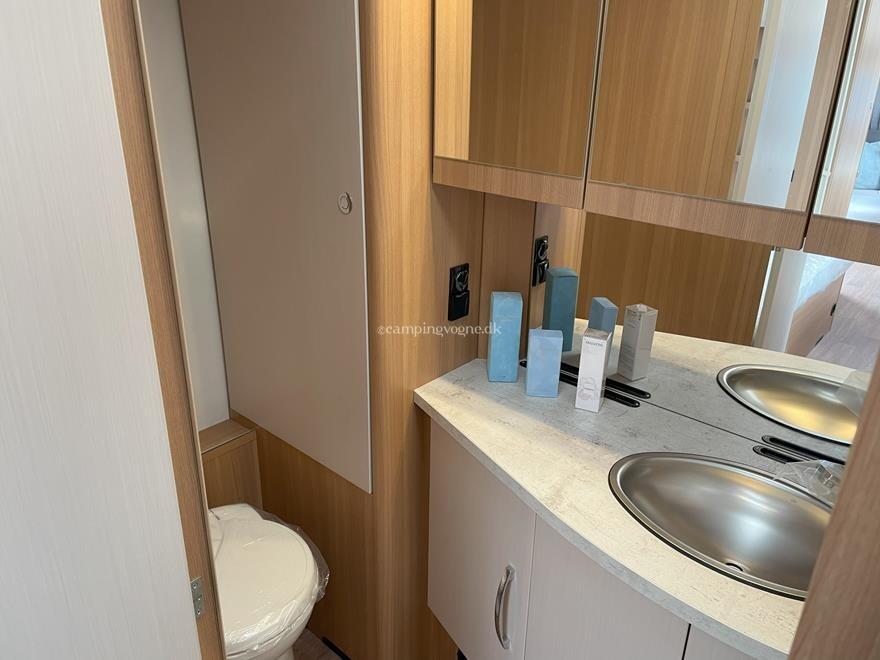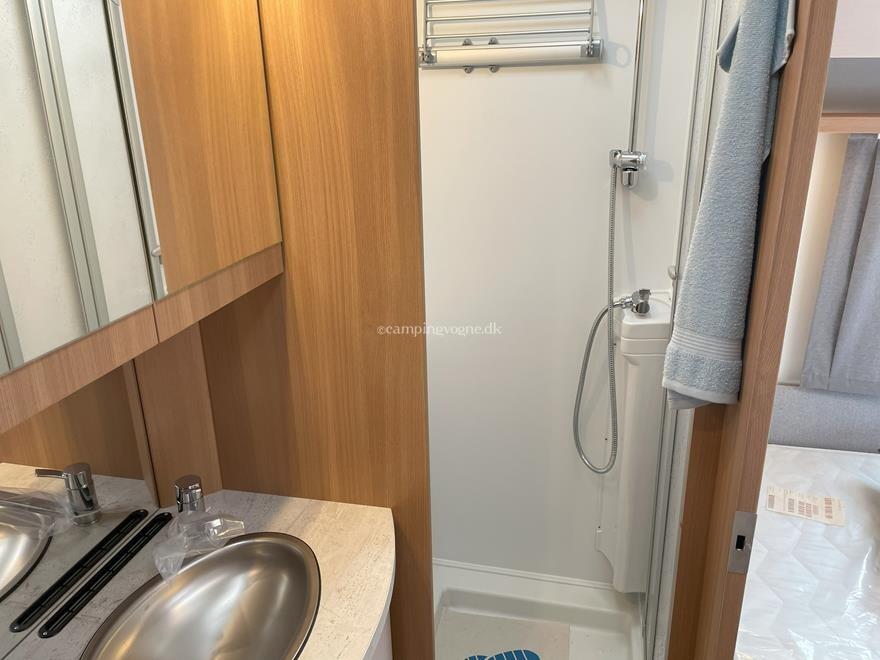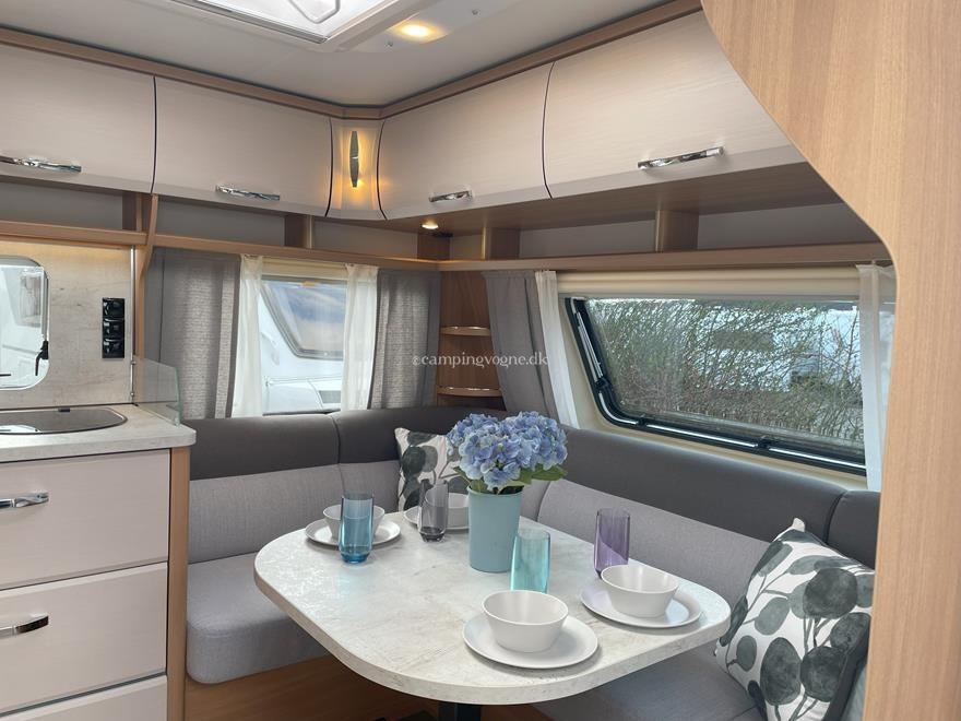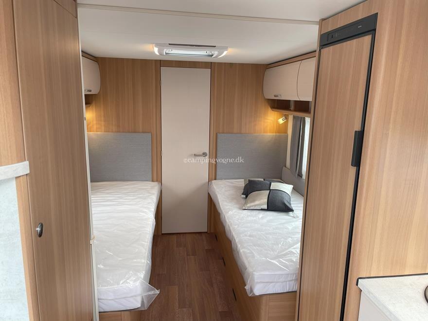 LMC Musica 542 E - 2022 - Super fin vogn indrette med rundsiddegruppe i forneden. Herefter køkken med højkøleskab overfor klædeskab. I bagenden først soveafdeling med to komfortable enkeltsenge, herefter badeværelse i hele vognens bagenden. Pris serie 290.000. Vognen er ekstraudstyret med 2000 kg totalvægt 8.0500 og myggenetsdør 2.000, Pris ialt denne vogn 300.000.-
