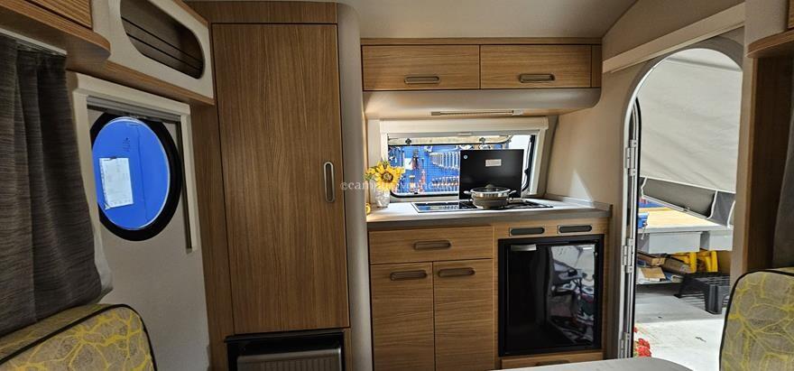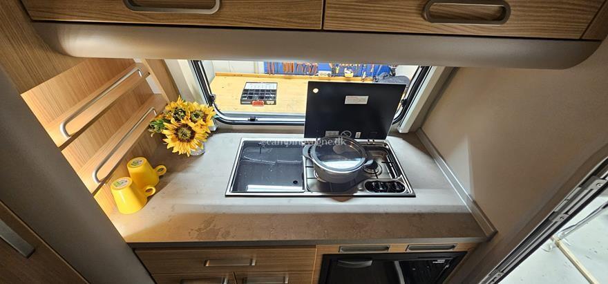 Fabriksny T@b 320 RS - 2026 i super flot dråbeformet look . Vognen er indrettet med rundsiddegruppe i bagenden med skabe over. Rundsiddegruppen omdannes let til en stor dobbeltseng på 175x200. I forenden klædeskab og funktionelt køkken med komfur og køleskab.