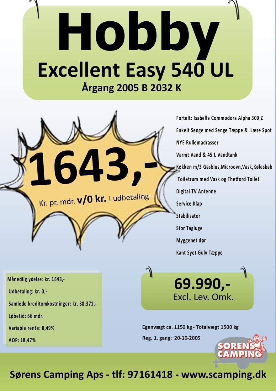Brugt EXCLUSIVE 540 UL-UF 2005 fra Hobby Pris kr. 69.990,-*