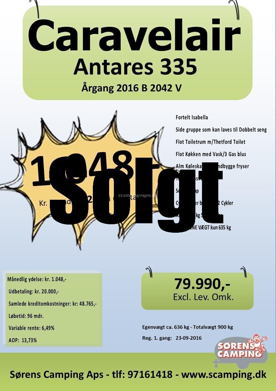 Brugt ANTARES 335 KAMPAGNE 2016 fra Caravelair Pris kr. 79.990,-*