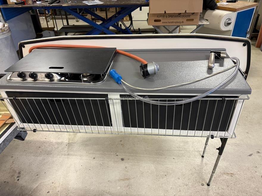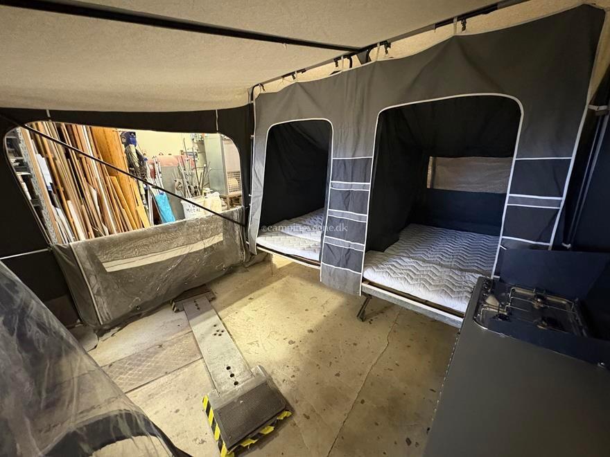 Allraund Køkken med 3 Gas Blus - 2x Lamel bund - 2x Topmadras - Næsehjul - 13" Alu Fælg - Stor Front Boks - Køre Kappe - Lomme Stykke - Kuffert Rum - Cykel Holder til 2 Cykler