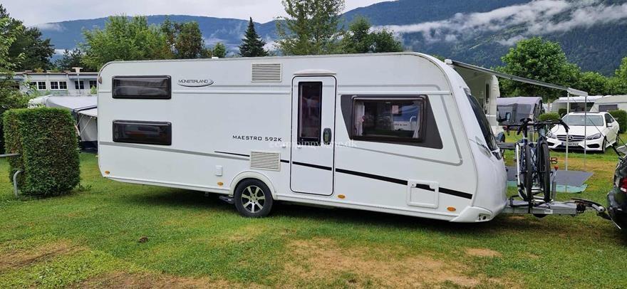 LMC Maestro 592 K vintervogn som er udstyret med både Powrwheel automatisk mover, Truma gasflaskeomskifter og et Isabella Sunshine plus solsejl.